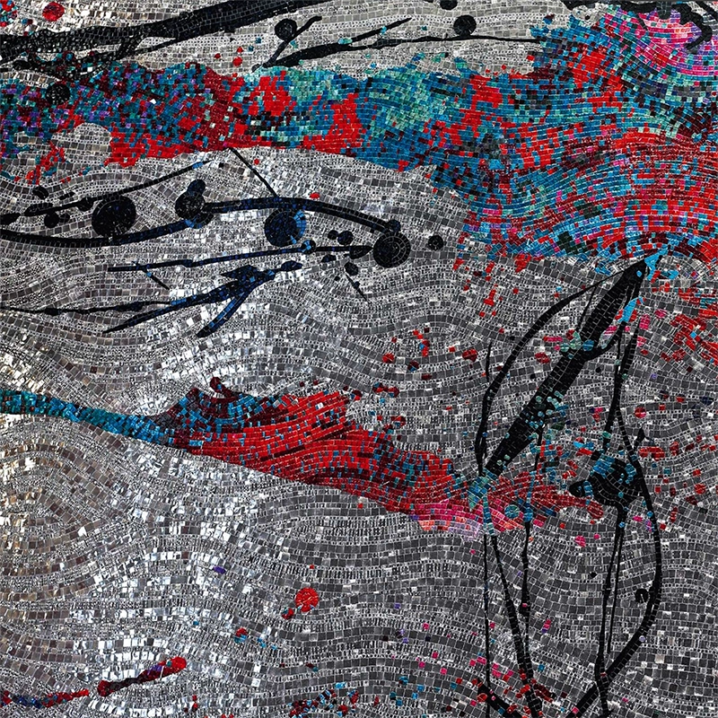 Матричное панно, еще называют пиксельным — это техника изготовления панно, в которой изображение состоит из цельных одинаковых по размеру чипов мозаики (10×10, 15×15, 20×20 мм) с одинаковыми швами и ровной сеткой. Как изготавливается: исходное изображение в программе автоматически раскладываем на черновой эскиз из мозаики, далее вручную прорисовываем эскиз до чистового результата и собираем панно строго по утвержденному эскизу. Плюсы — доступная стоимость, короткие сроки изготовления, результат панно виден заранее, так как наши чистовые эскизы полностью соответствуют готовому панно.